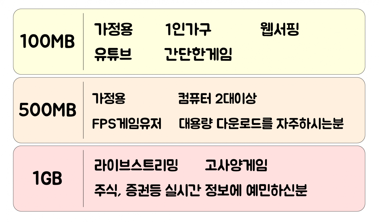 통신사를 결정했다면, 이제는 **인터넷 속도(요금제)**를 선택할 차례입니다.